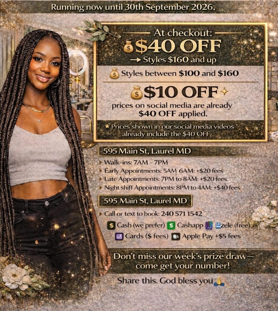 At Liane Braiding Salon, we braid with love, passion, and meticulous attention to detail. We don’t just braid to braid—we braid to bring you joy and confidence. We carefully consider your hair type, texture, color, and face shape to create a style uniquely tailored to you. Every braid is crafted to make you happy, infused with the care and dedication that defines our work.